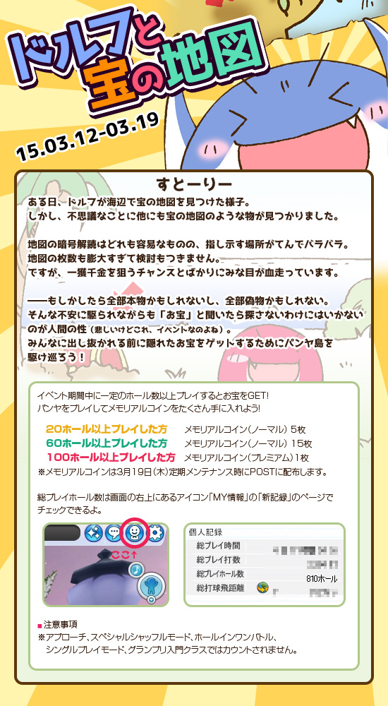 ▼メモリアルコインをゲット!「ドルフと宝の地図」開催!